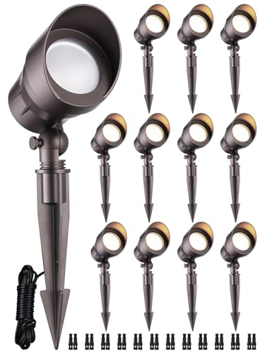 Lumina 4W LED Landscape Lights Cast-Aluminum Waterproof Outdoor Low Voltage Spotlights for Walls Trees Flags Light with Warm White 4W MR16 LED Bulb and ABS Ground Stake Bronze SFL0104-BKLED6